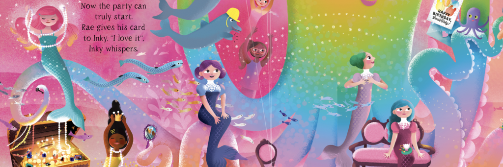 🇬🇧 When Inky the Octopus has a birthday, the mermaids and their sea friends prepare a joyful surprise — but little Rae feels too small to help.