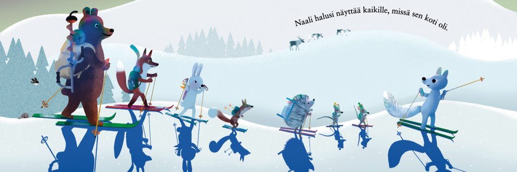 🇪🇪 „Karu ja Rebane teel põhjamaale“ ühendab vanad rahvajutu traditsioonid ja tänapäevase illustreeritud seiklusloo. Karu armastab talvel kala püüda, kuid järved ei jäätu enam. Tark Rebane pakub välja plaani rännata koos põhja poole, et otsida talve. Teel ühinevad nendega teised loomad, kes samuti igatsevad lund ja külma.